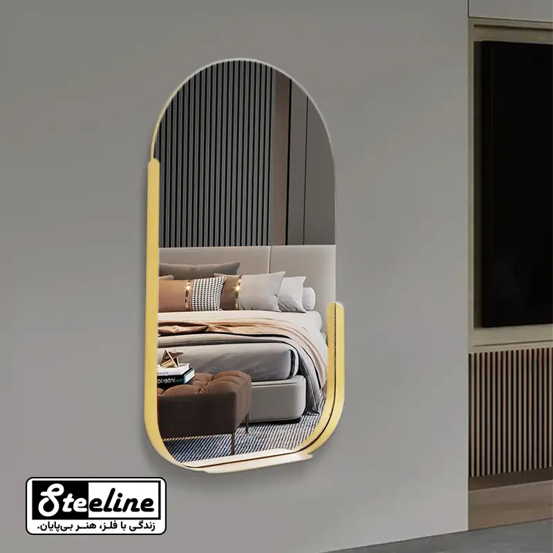 آینه دکوراتیو فلزی دیواری مدرن بیضی شلف دار